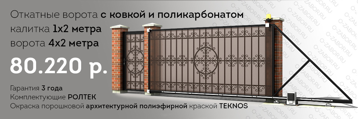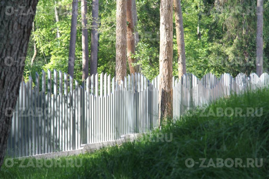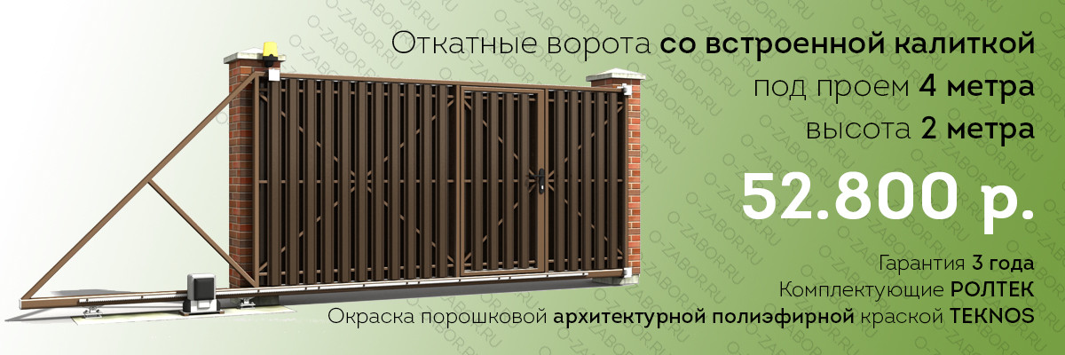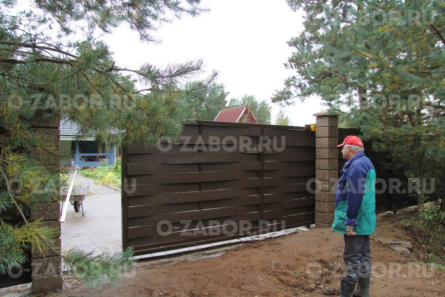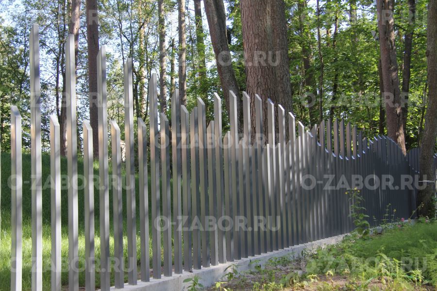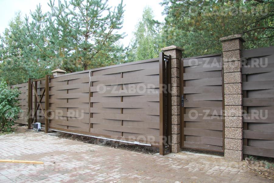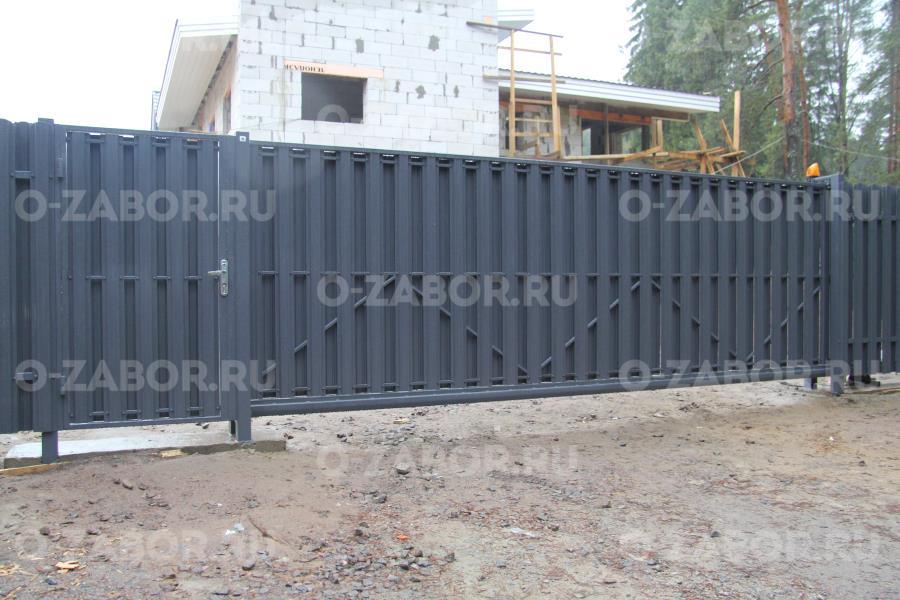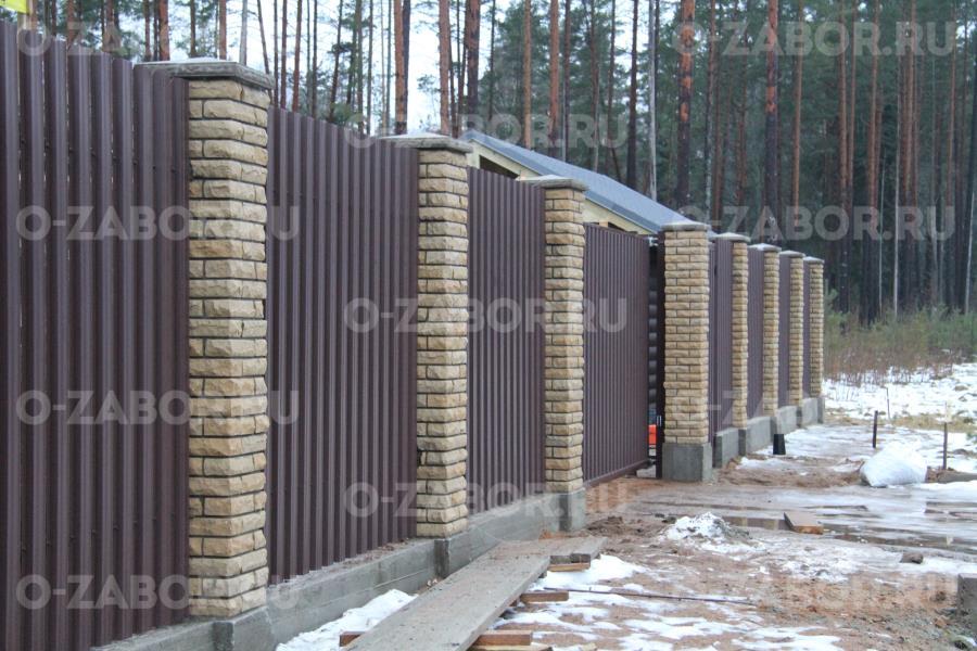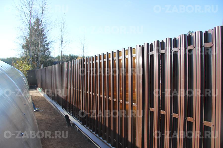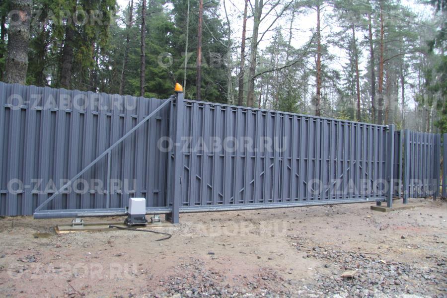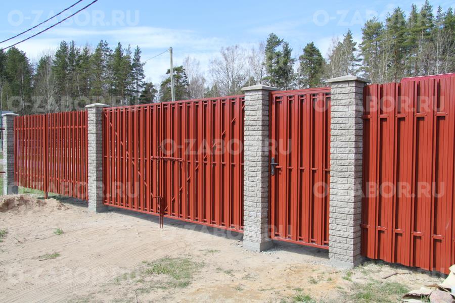 Длина забора 50 метров, откатные ворота и калитка с подготовкой для деревянного штакетника.