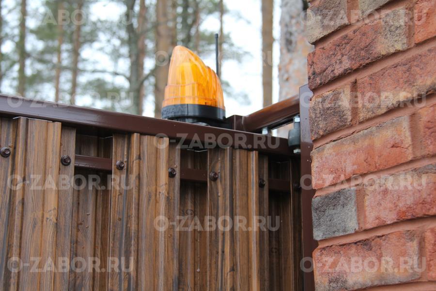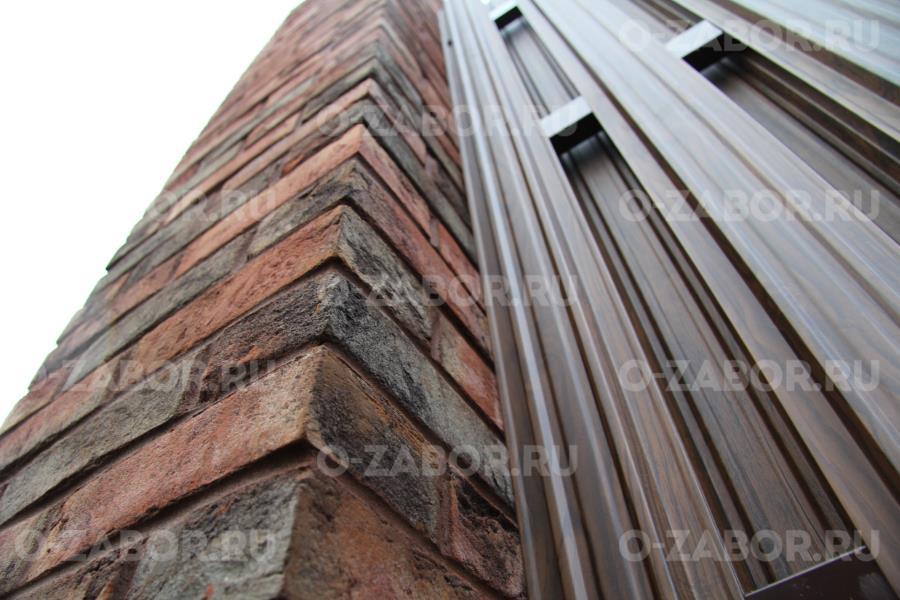 Мы сделали потрясающий забор из благородного штакетника под золотой дуб и кирпича ручной формовки.
