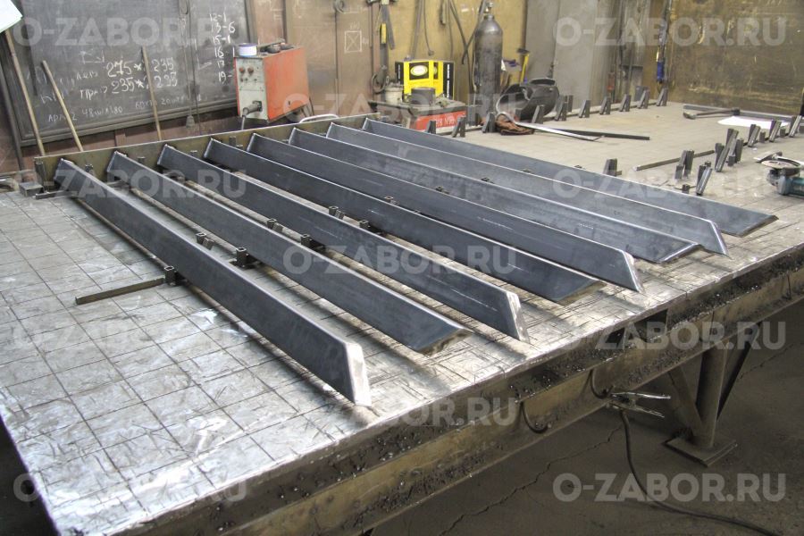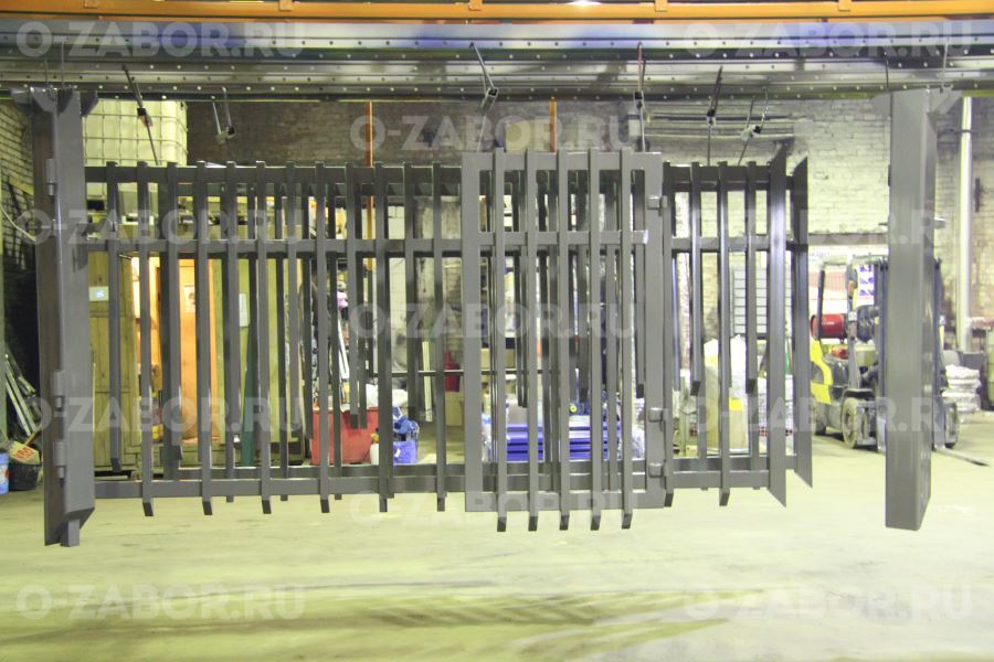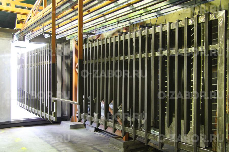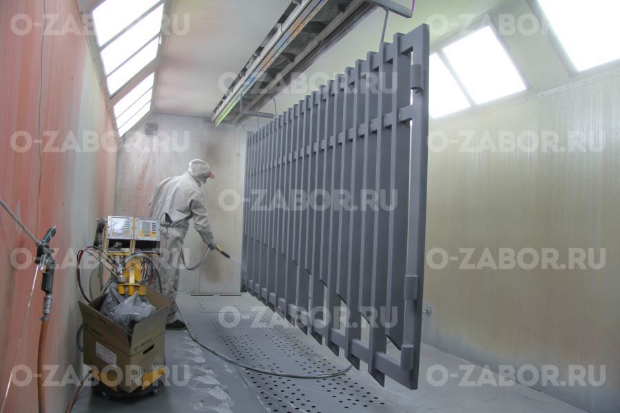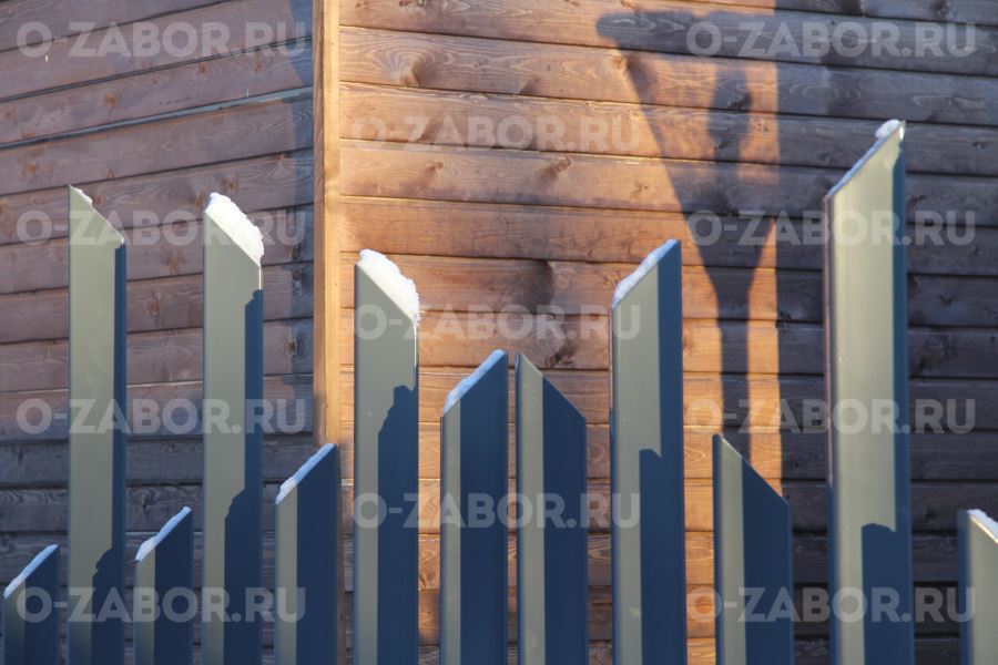 Из профильной трубы 40х80 высотой от 1,5 до 2 метров. Цвет RAL7040 полуглянец.