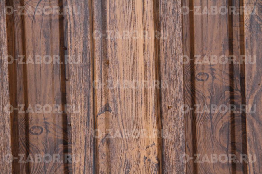 Из строганной доски 120х20х3000. Высота забора 2 метра. Цвет столбов и каркаса ворот RAL8017, цвет штакетника RAL8019.