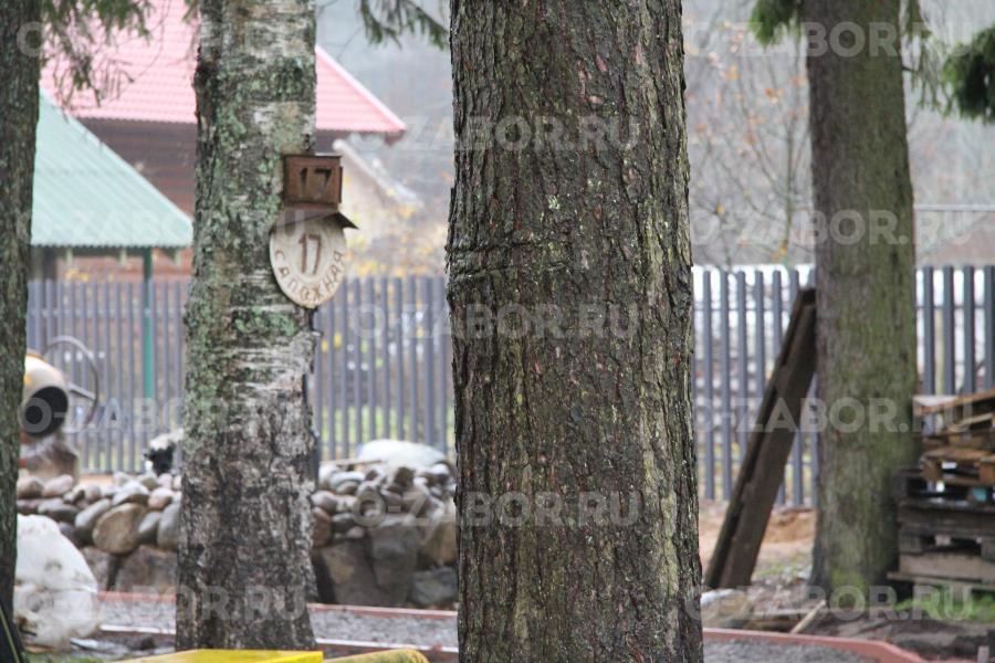 Длина периметра ограждения 380 метров. Тыльные стороны из штакетника шириной 120 мм, цвет RAL8017 в полимерном покрытии, зашивка с двух сторон.