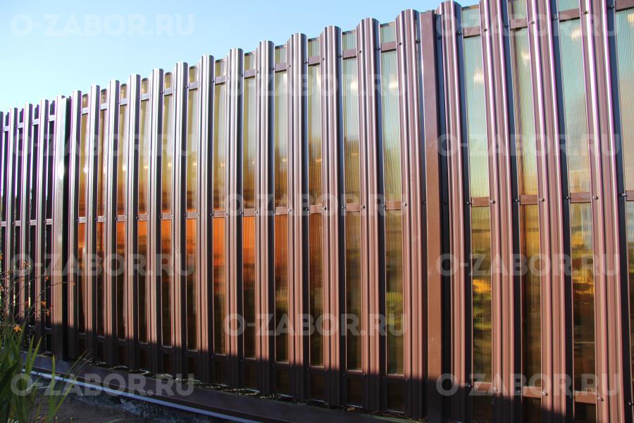 Традиционный забор из штакетника по периметру, с изюминкой из поликарбоната.