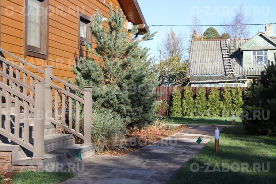 Там, где надо было отгородиться от соседей, сделали двухстороннюю зашивку. А по бокам оставили прозрачную зашивку в один штакет.