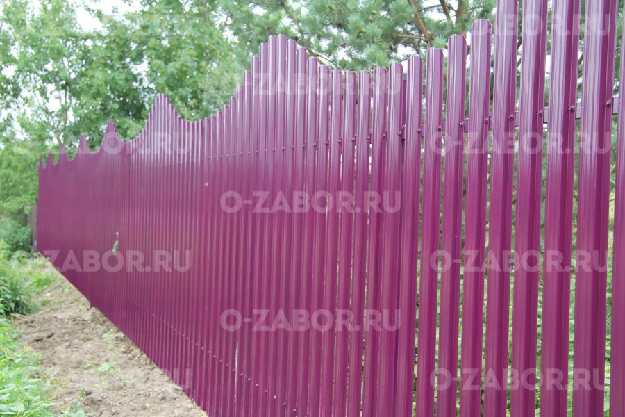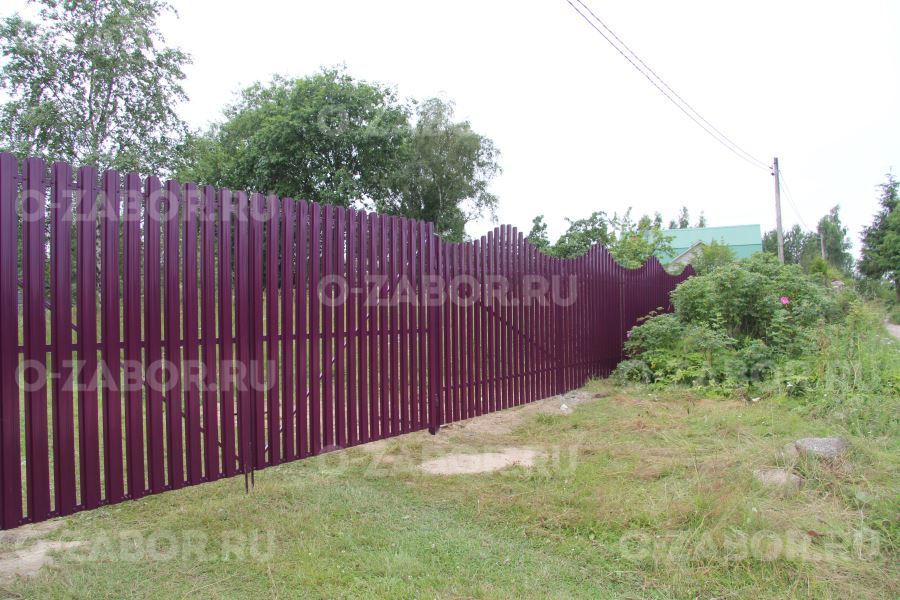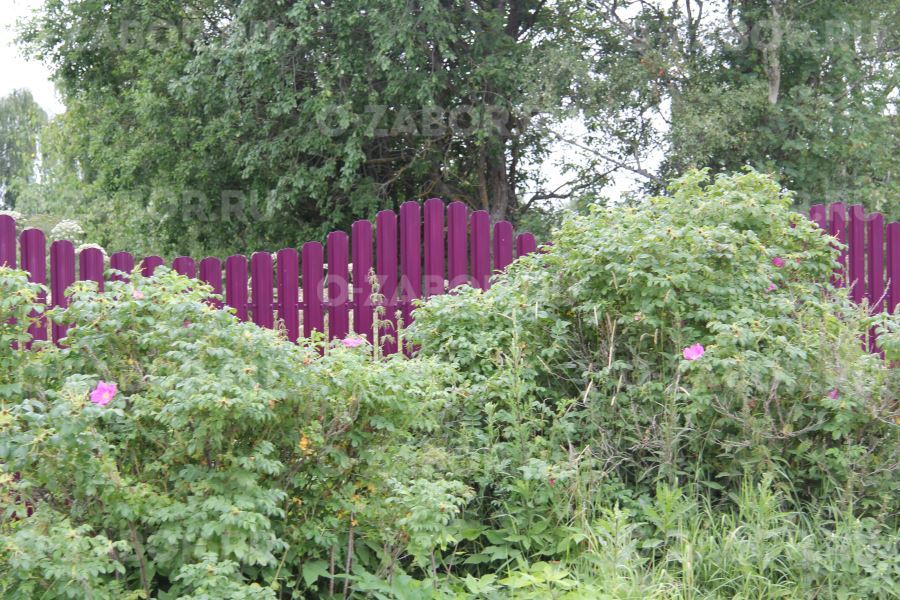 Волна из штакетника в оригинальном цвете украшает деревенский пейзаж.