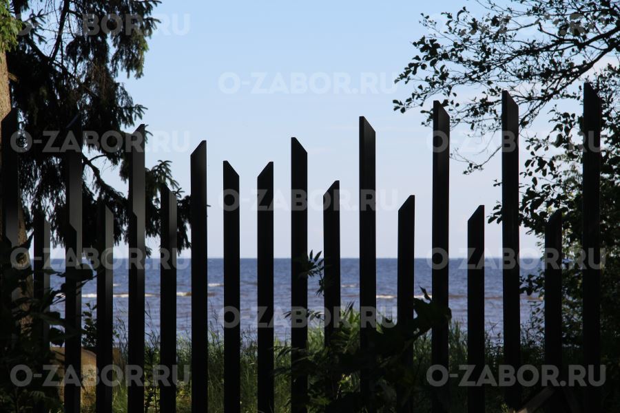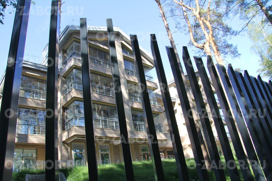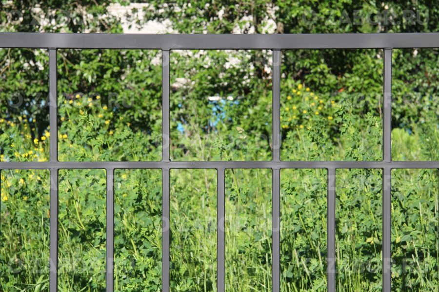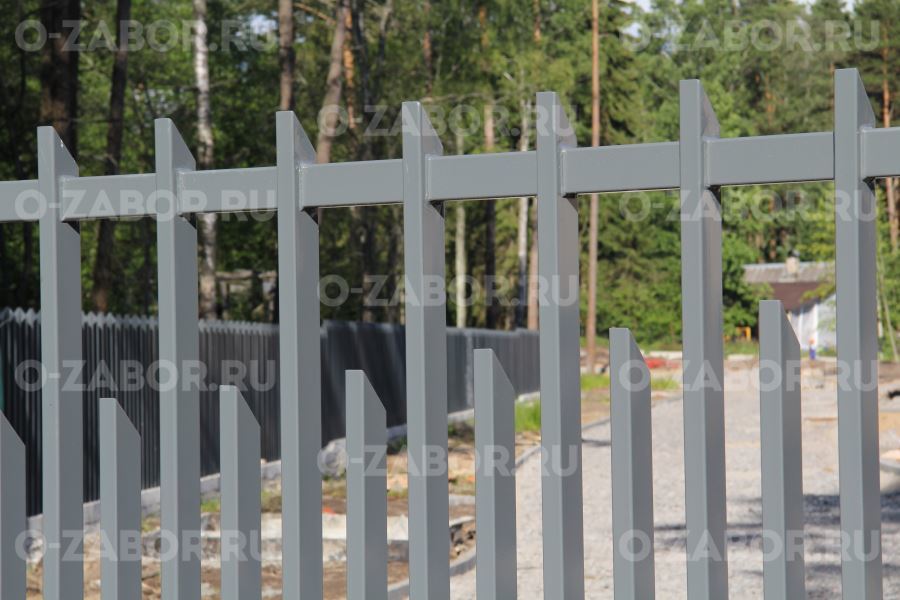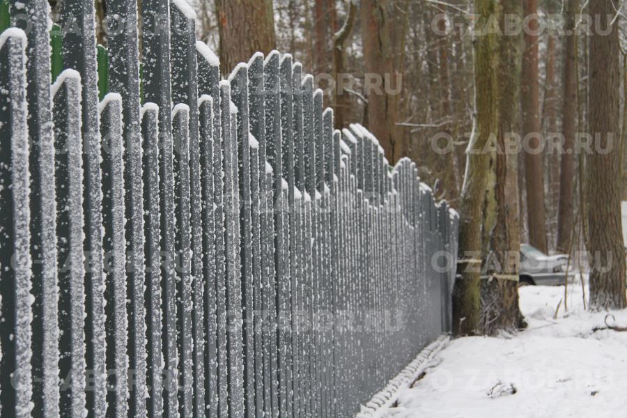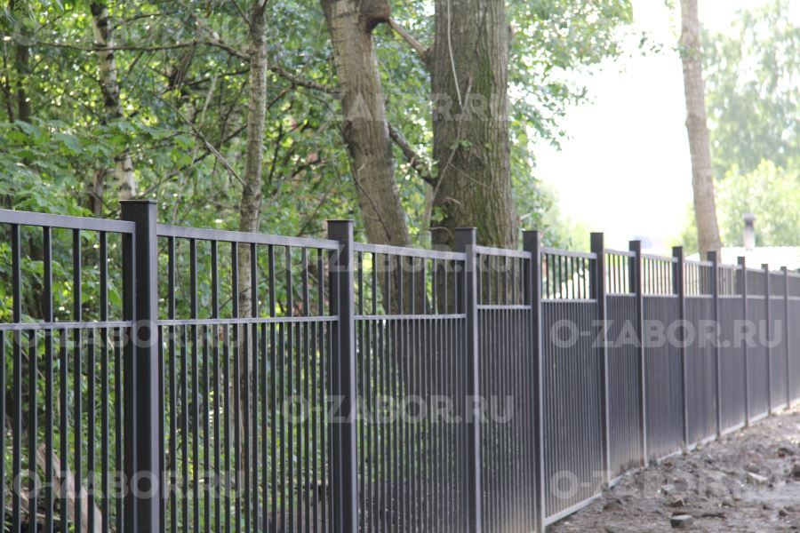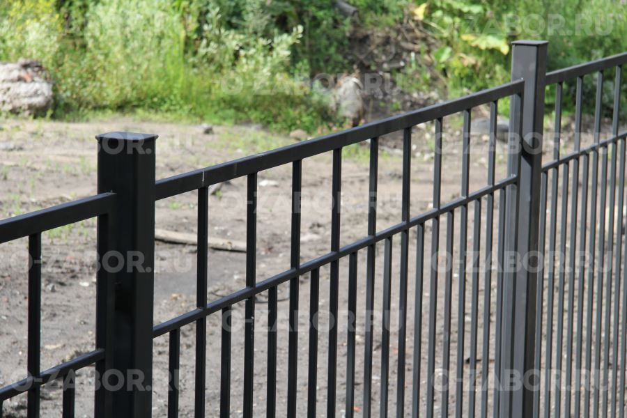 Классический сварной забор для городских улиц впечатляет своей регулярностью.