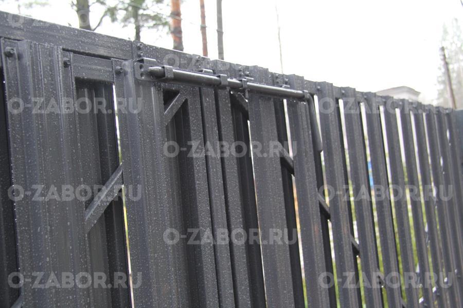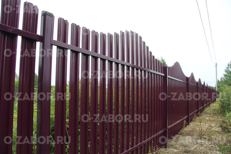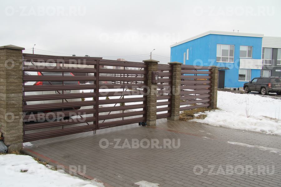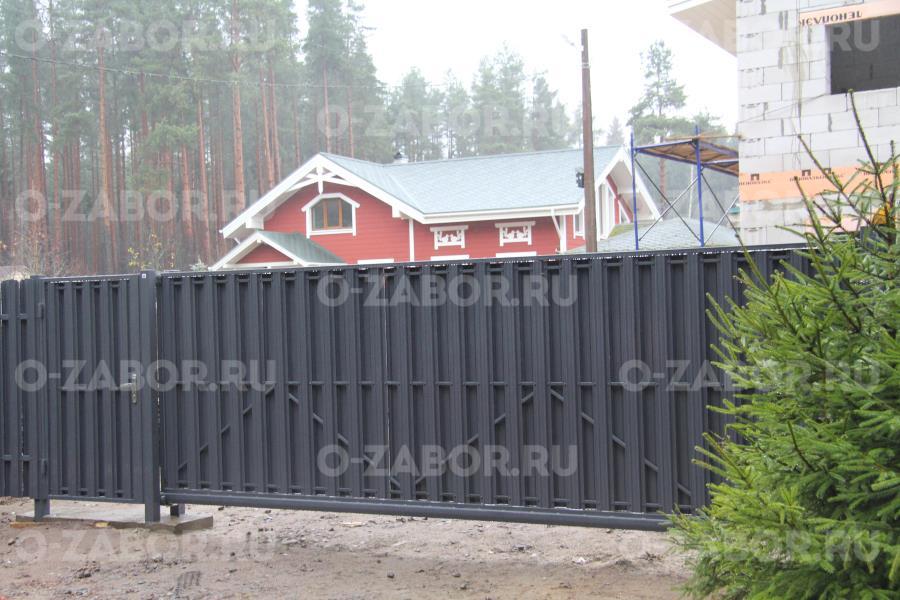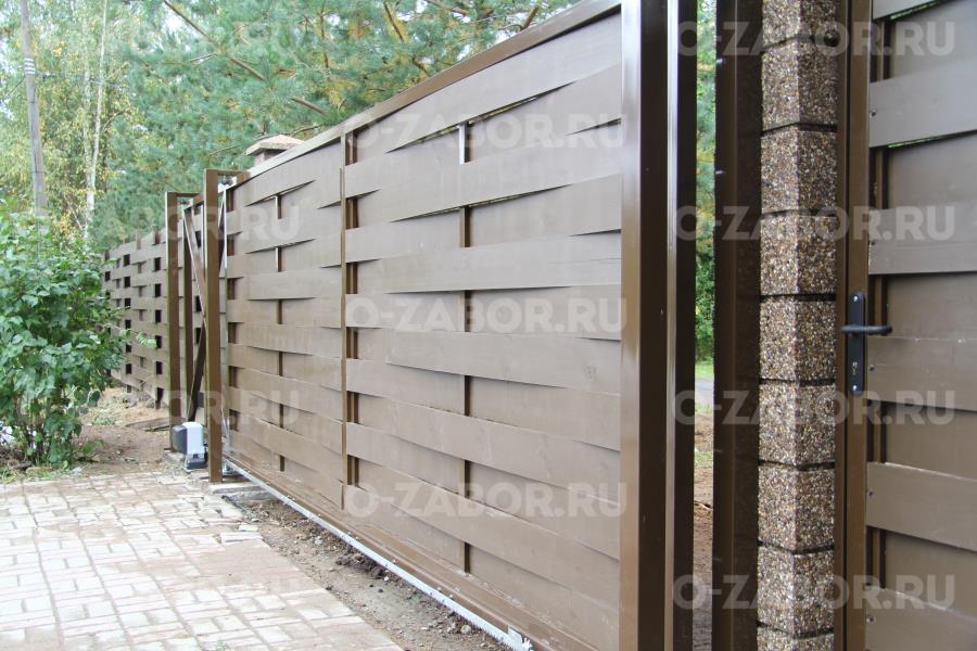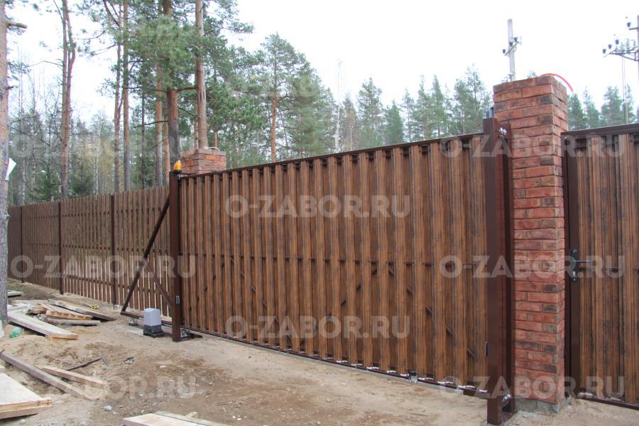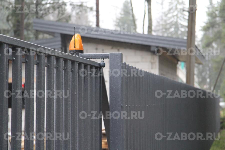 Длина забора 50 метров, откатные ворота и калитка с подготовкой для деревянного штакетника.