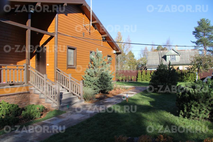 Там, где надо было отгородиться от соседей, сделали двухстороннюю зашивку. А по бокам оставили прозрачную зашивку в один штакет.