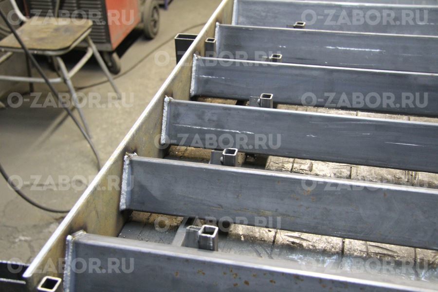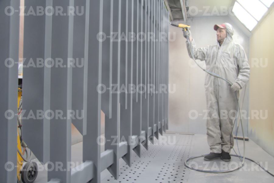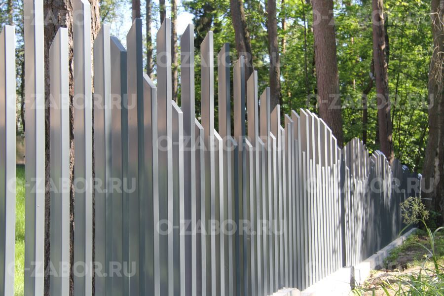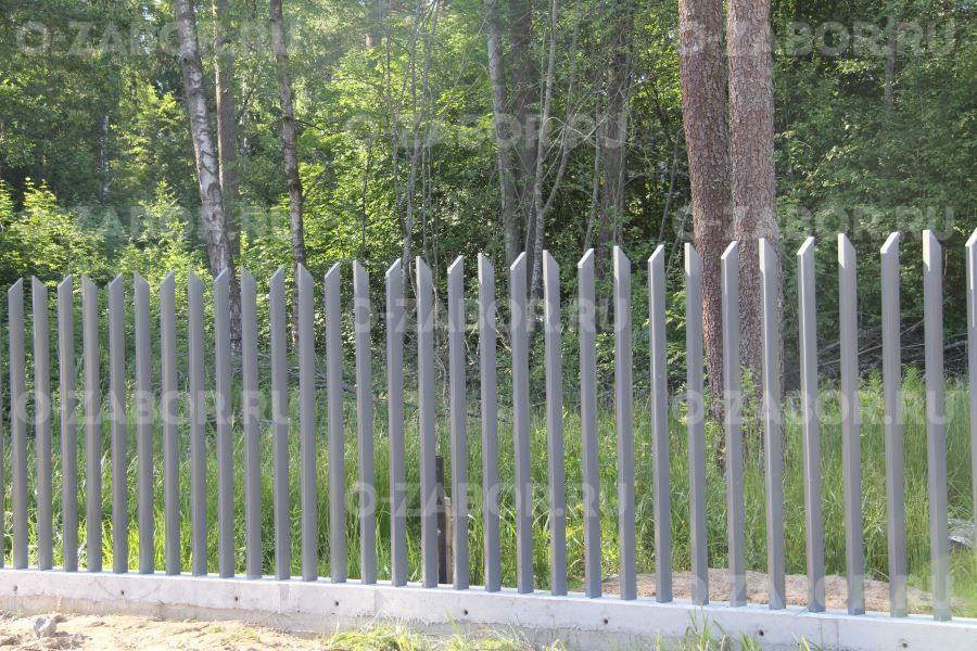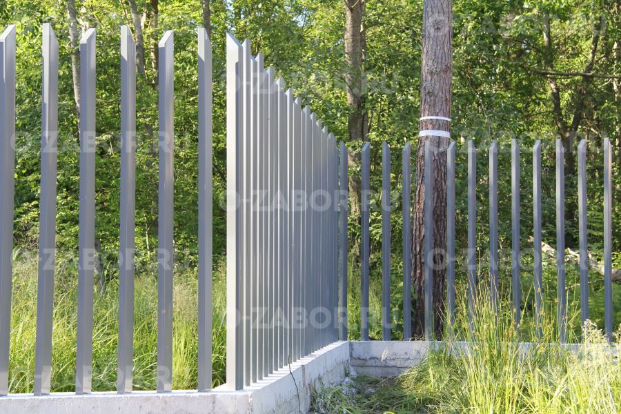 Из профильной трубы 40х80 высотой от 1,5 до 2 метров. Цвет RAL7040 полуглянец.