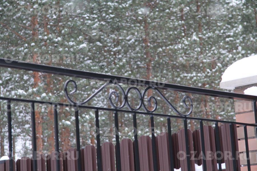 Большой периметр для большого дома из ковки и штакетника в большом поселке.